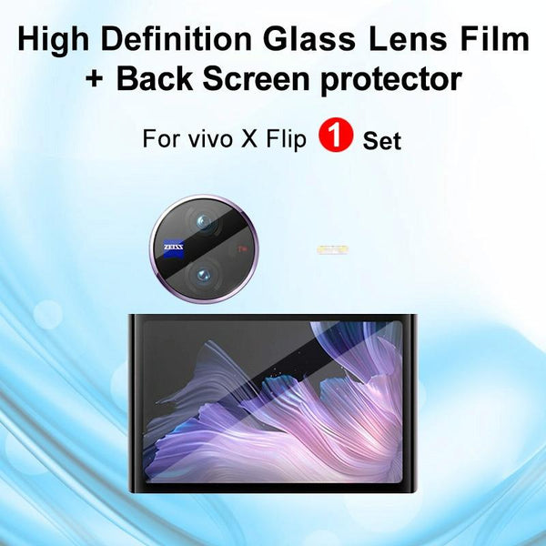 For vivo X Flip 1 Sets imak Tempered Glass Rear Camera Protection Ring + Glass Rear Screen Sticker