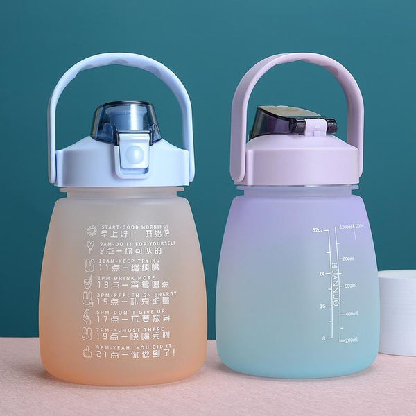 1.1L Portable Large Belly Water Cup High Temperature & Drop Resistant Straw Cup(Gradient Pink)