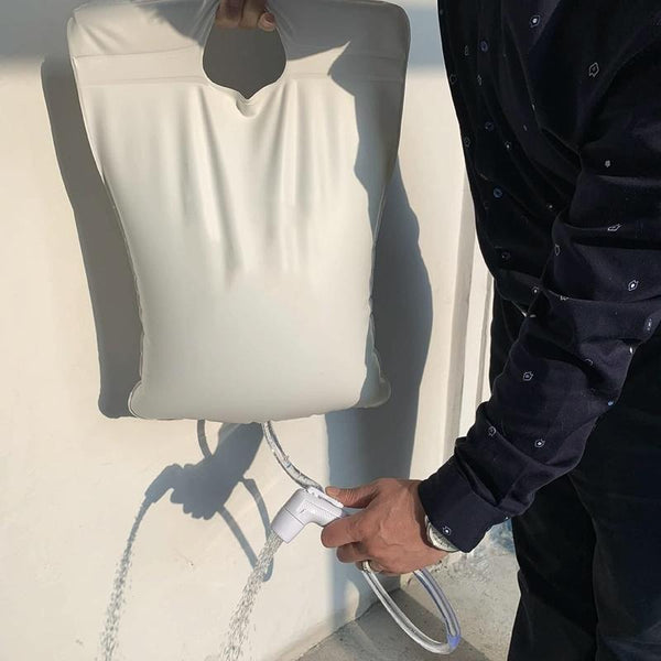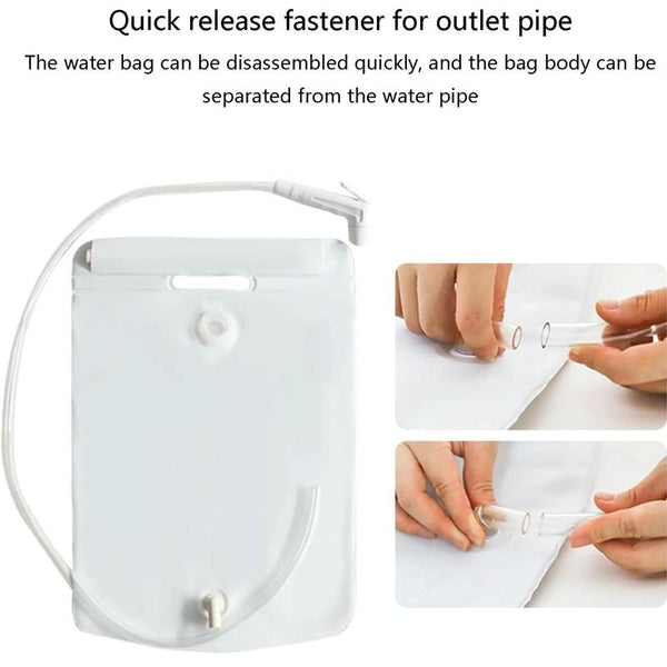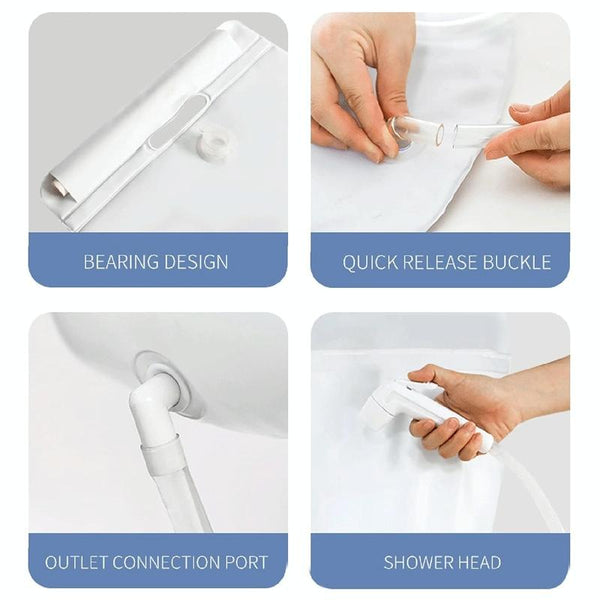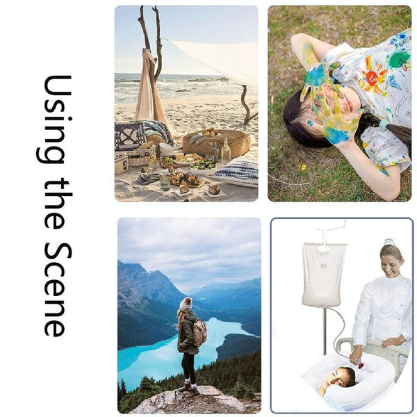 4. Hang on a bedpost or IV pole to provide up to 10 liters of water in areas where there is no water source, enough for a complete shampoo and rinse