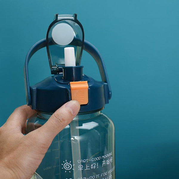 2L Large-Capacity Sports Water Cup Outdoor Drop-Proof Portable Straw Water Bottle(Purple Green Gradient)