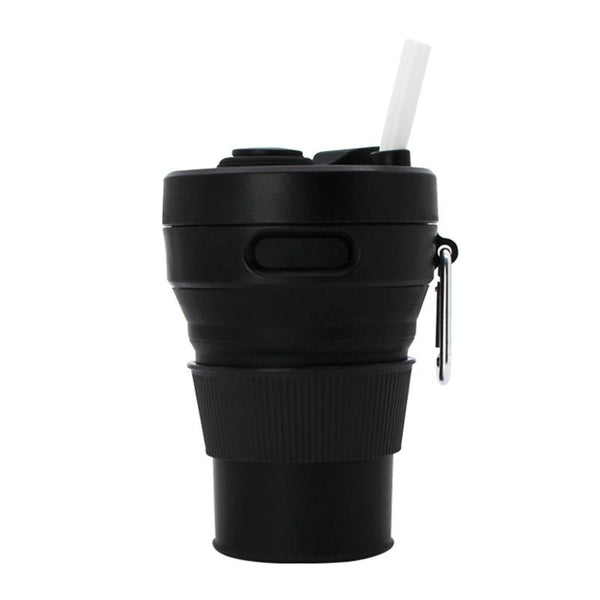 350ML Folding Portable Silicone Telescopic Drinking Coffee Cup Multi-function Silica Cup Travel(Black)