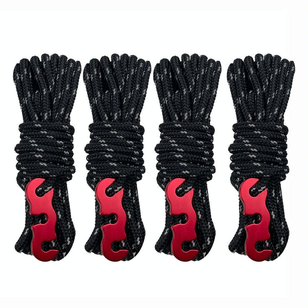 4m x 4 Rolls Outdoor Camping Tent Canopy Wind Rope Luminous Multi-Function Wind Rope Buckle Tent Fixed Rope( S Buckle-Black)