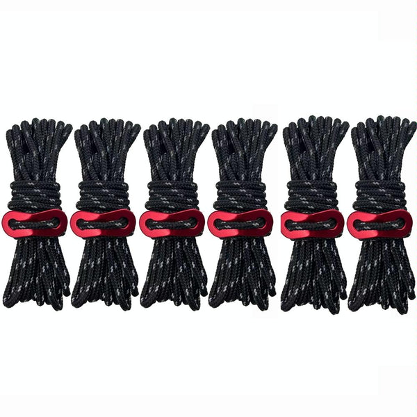4m x 6 Rolls Outdoor Camping Tent Canopy Wind Rope Luminous Multi-Function Wind Rope Buckle Tent Fixed Rope(Figure 8 Buckle-Black)