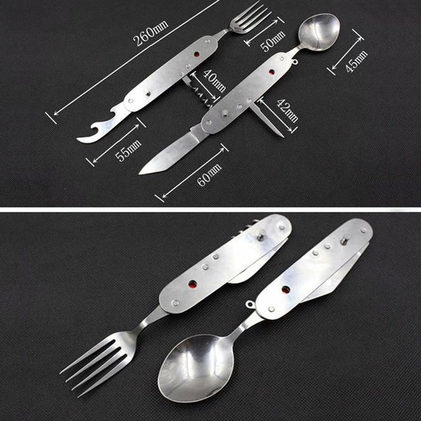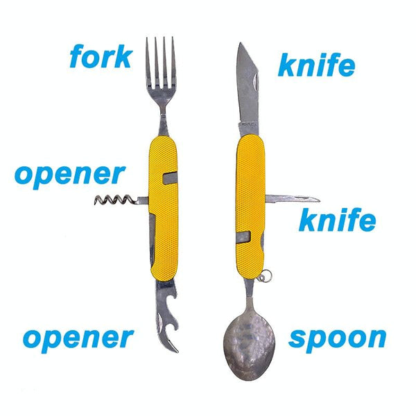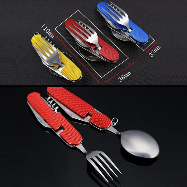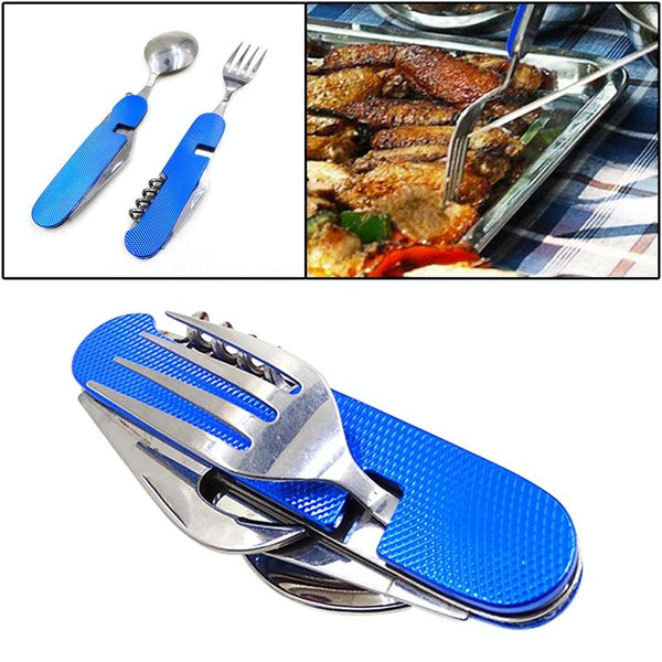 6-in-1 Stainless Steel Travel / Camping Folding Cutlery Set, Spoon + Fork + Knife +Bottle Opener Set(Blue)