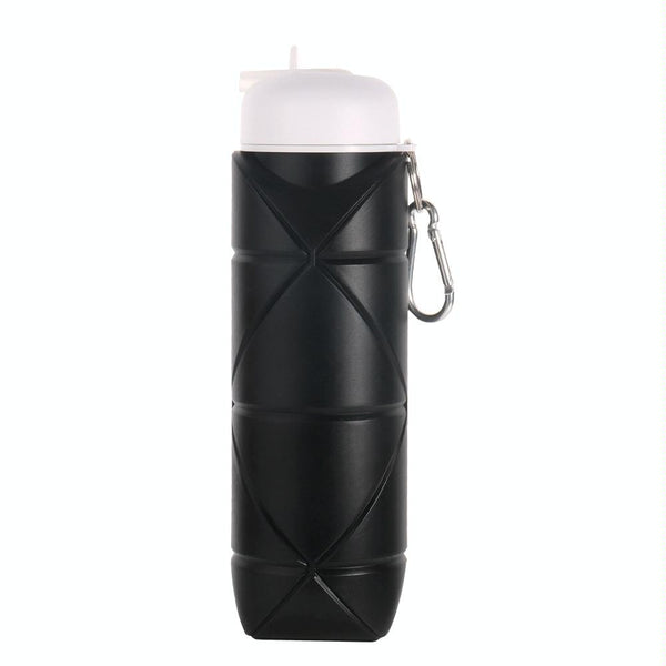 600ml Food Class Silicone Folding Outdoor Water Cup Portable Cycling Water Bottle(Black)