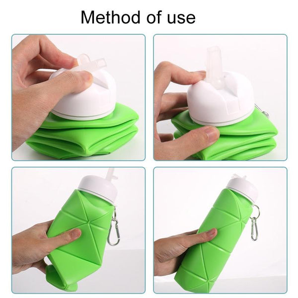 600ml Food Class Silicone Folding Outdoor Water Cup Portable Cycling Water Bottle(Green)