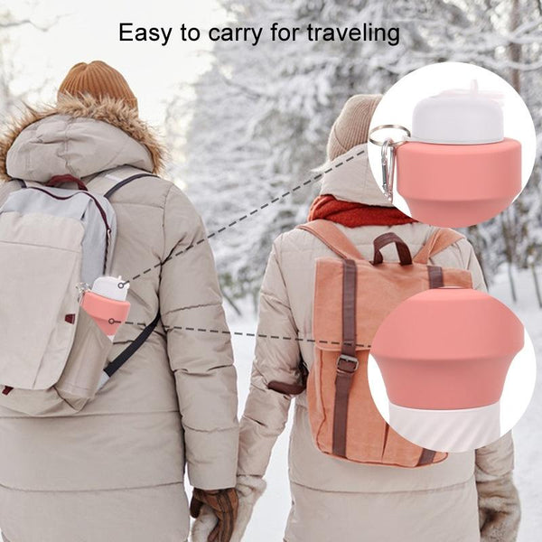 650ml Large Capacity Sports Silicone Water Bottle Foldable Fitness Dumbbell Water Mug(Black)