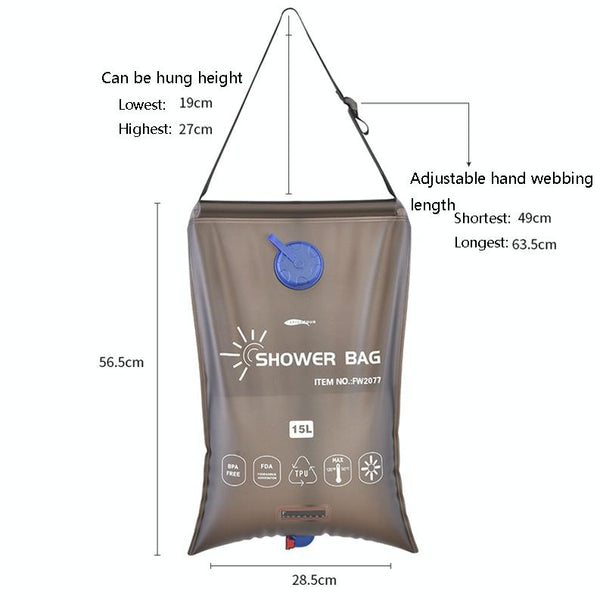 AFISHTOUR FW2077 15L Solar Shower Bag Outdoor Sun Bathing Bag(Black)