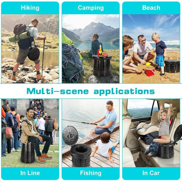 Car Outdoor Multifunctional Retractable Thickened Folding Stool Portable Toilet(Black)