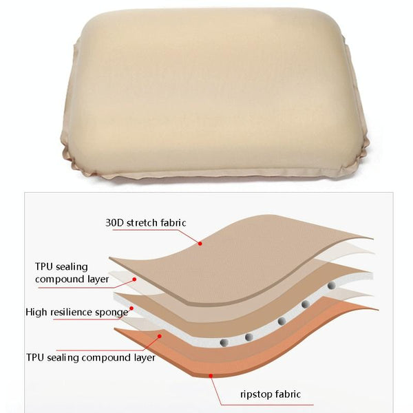 CHANODUG Camping Travel Portable Automatic Inflatable Foam Pillow(Navy Blue)