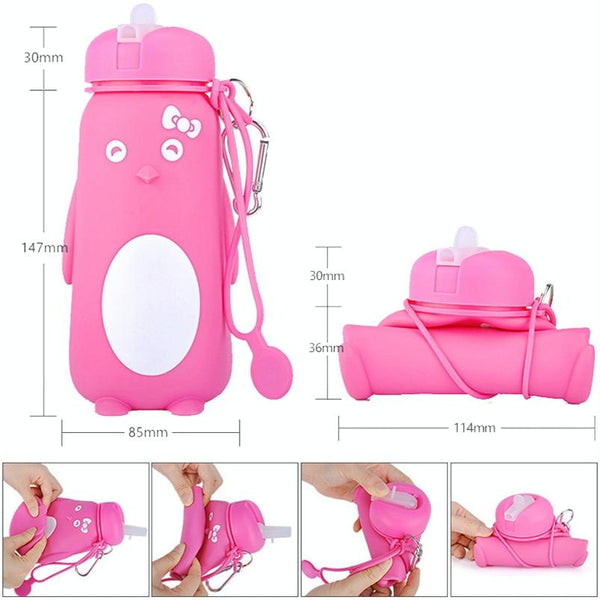 Cute Cartoon Foldable Sports Water Bottle, Color: Penguin (Black)