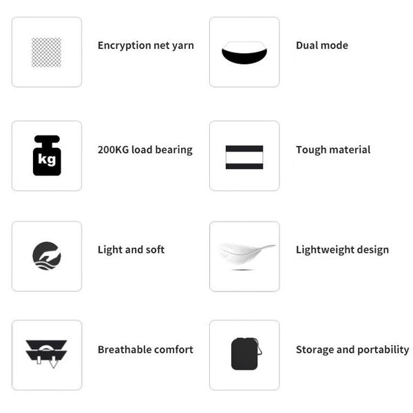 7. Accessories: No. 8 gourd buckle x2, strap x2, storage bag x1, mosquito net rope x2