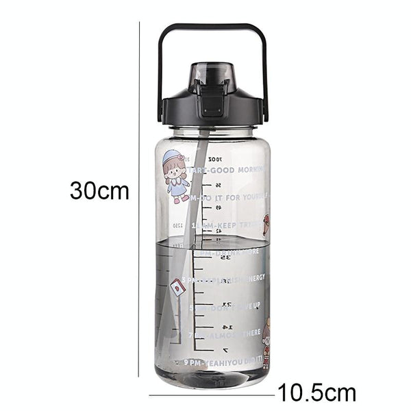 GYBL4503 2000ml Large-capacity Outdoor Sports Water Bottle with Straw, Spec: Black+Stickers