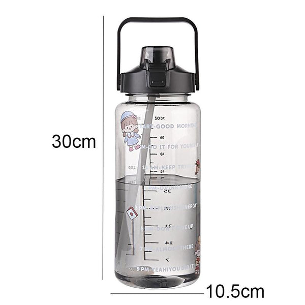 GYBL4503 2000ml Large-capacity Outdoor Sports Water Bottle with Straw, Spec: Blue+3D Stickers