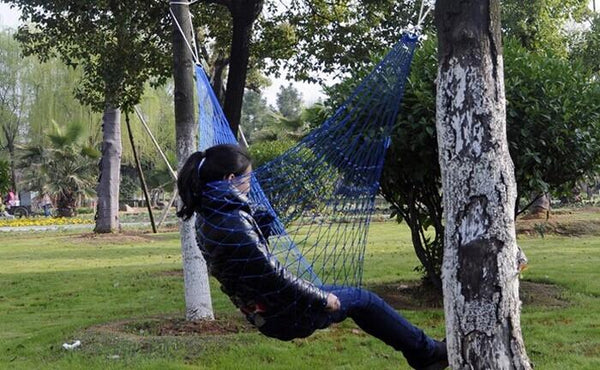 Hanging Nylon Mesh Rope Hammock Sleeping Hanging Bed (Colour: Orange Section)