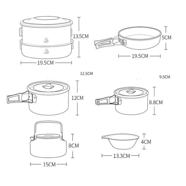 Hewolf HW-K1779 4-5 People Outdoor Aluminum Stove Portable Storage Camping Set(Gray)