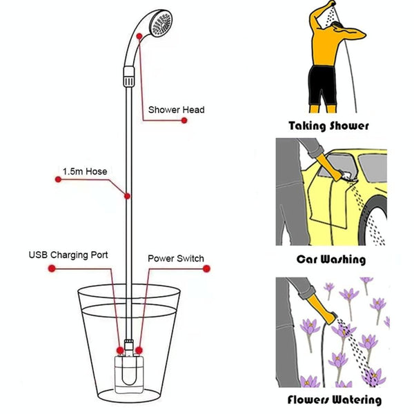 5. Just put the shower pump into the water and turn on the power, you can enjoy the shower.