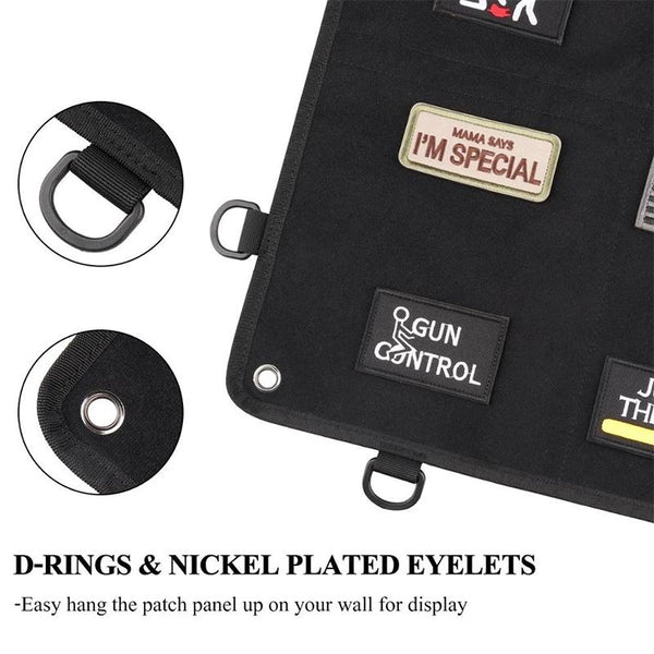 4. D-rings and nickel-plated eyelets make the patch panel easy to hang on the wall for display.