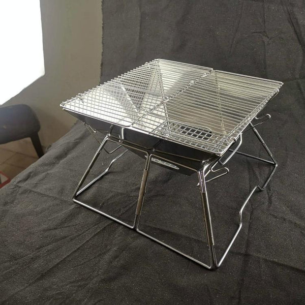 Liftable Barbecue Grill Camping Stainless Steel Folding Barbecue Grill Wood Charcoal Grill