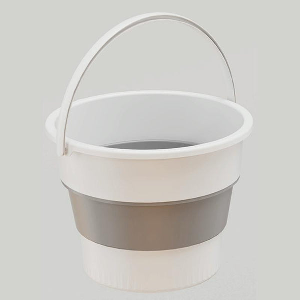 Medium 10L Folding Thickened Portable Plastic Bucket Outdoor Fishing Barrel Car Travel Wash Barrel(White Gray)