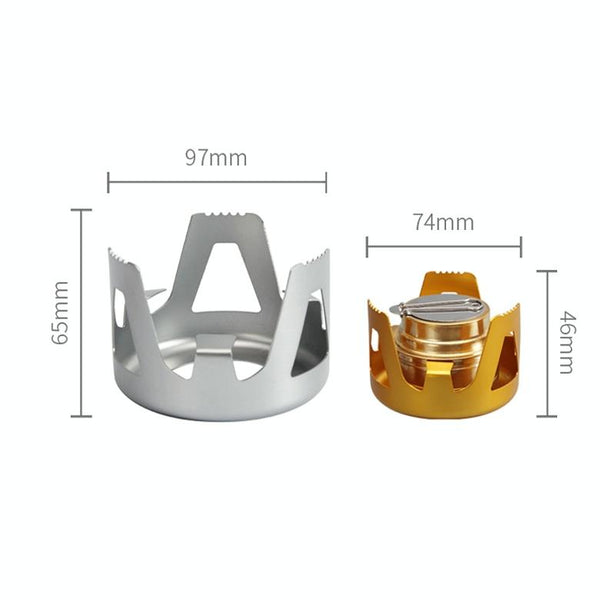 9. Dimensions: bracket: 9.7x6.5 cm, alcohol stove: 7.4x4.6 cm