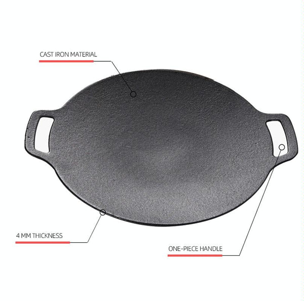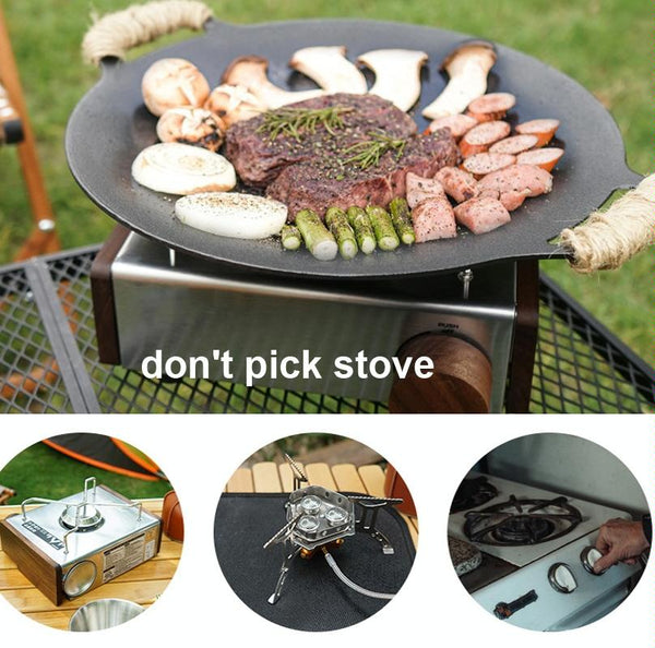 Outdoor Camping BBQ Cast Iron Grill Pan,Style: Baking Pan+Hemp Rope