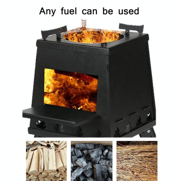 Outdoor Camping Folding Portable Barbecue Wood Stove, Size: Large (Stainless Steel)