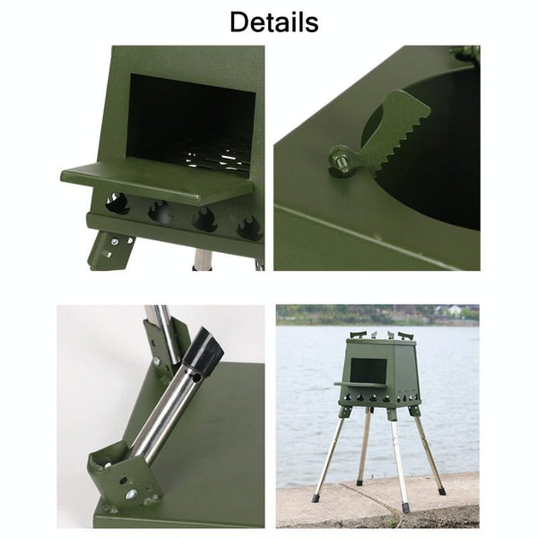 Outdoor Camping Folding Portable Barbecue Wood Stove, Size: Small (Green)