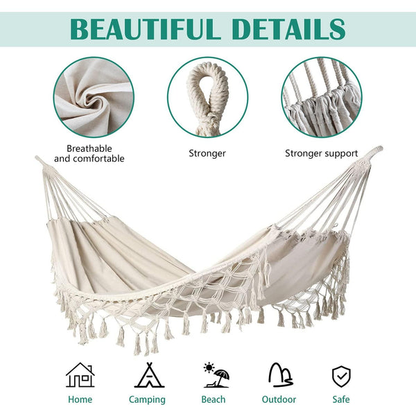 Outdoor Camping Hammock Tassel Polyester Cloth Hammock(2 Yellow And Pink Striped Tassel)