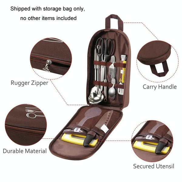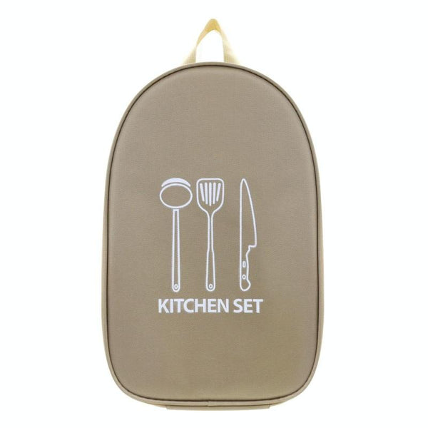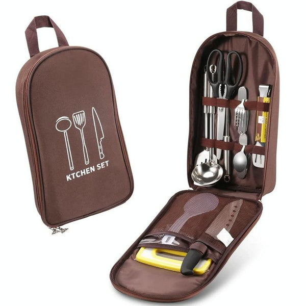Outdoor Camping Kitchen Utensils Portable Storage Bag Picnic Flatware Supplies(Khaki)