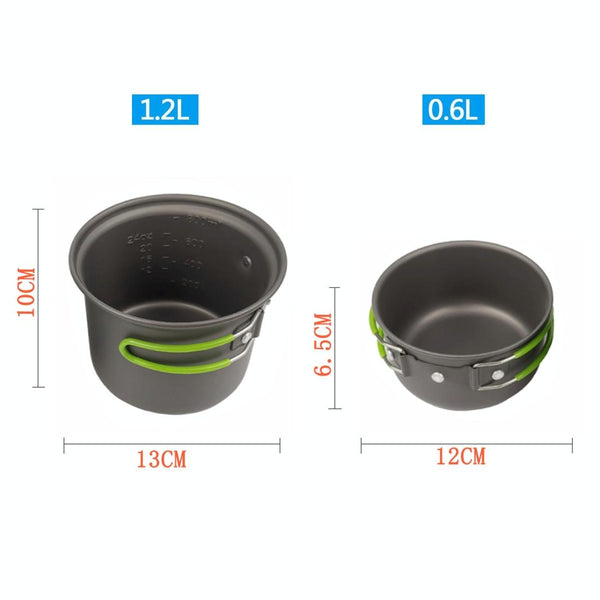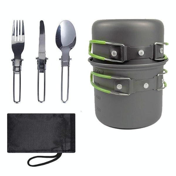 Outdoor Camping Portable Cookware 1-2 People Tableware Combo Set(Green)