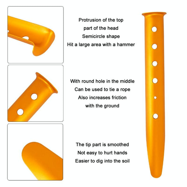 Outdoor Camping Tent Aluminum Alloy Tubular Ground Nails(Gold)