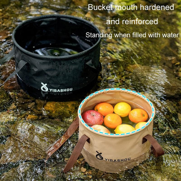 Outdoor Folding Bucket Travel Camping Portable Large Capacity Water Storage Bucket, Capacity: 10L Black