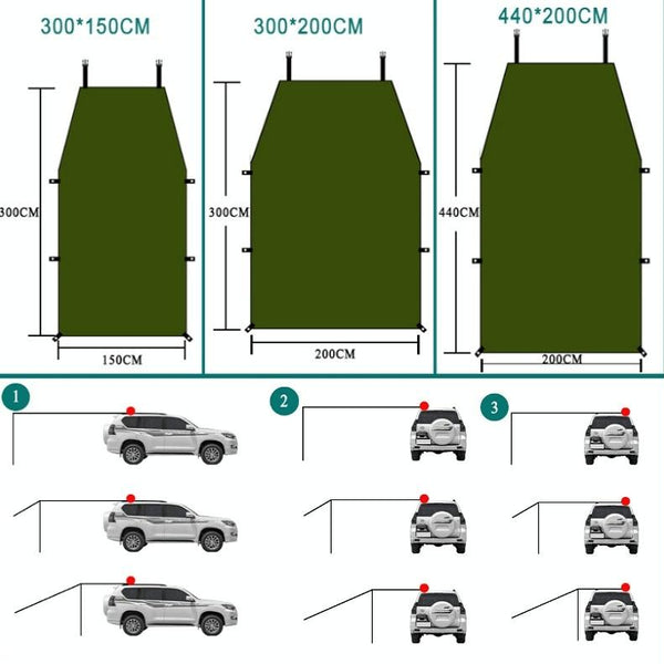 Outdoor Picnic Camping Tent On The Side Of The Car Rain-proof Sunshade Canopy 300x150cm(Black)