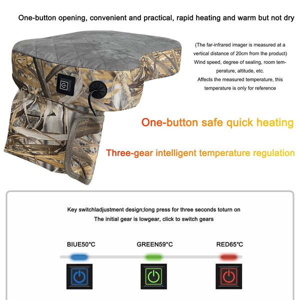 Outdoor Portable Camouflage 3 Gear Adjustable Heated Cushion 40x27x7cm(Reed)