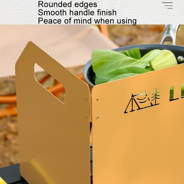 Outdoor Portable Foldable Picnic Stove Thickened Windproof Windshield Camping Cassette Stove Head Covering Plate(Khaki)