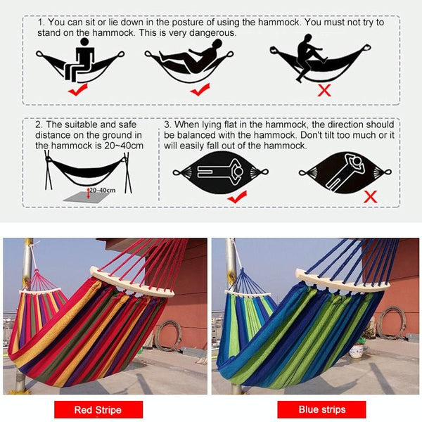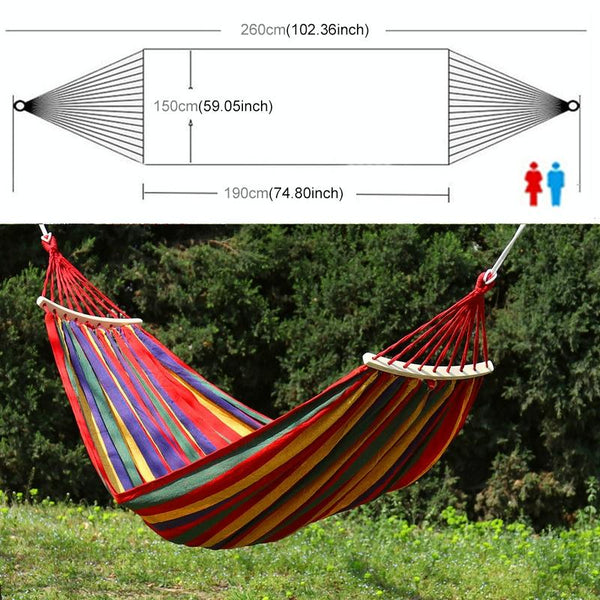 Outdoor Rollover-resistant Double Person Canvas Hammock Portable Beach Swing Bed with Wooden Sticks, Size: 190 x 150cm(Red)