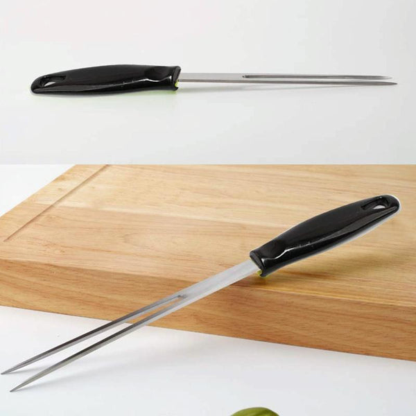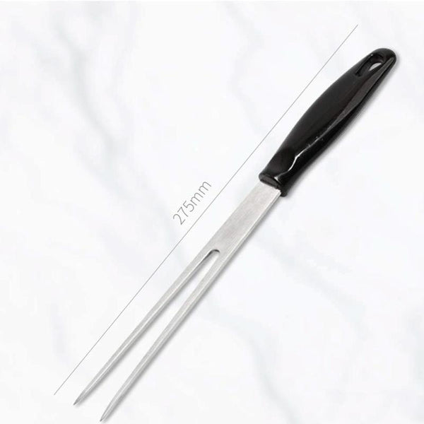 Outdoor Stainless Steel Barbecue Fork Food PP Handle Meat Spork(Black)