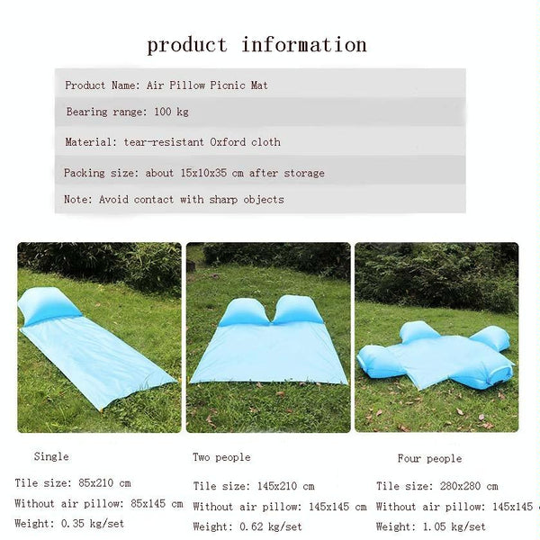 Outdoor Waterproof Air Pillow Picnic Mat Carrying Ground Sand Beach Grass Mat, Style:Double(Random Color)