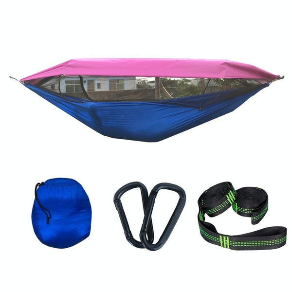 Parachute Cloth Anti-Mosquito Sunshade With Mosquito Net Hammock Outdoor Single Double Swing Off The Ground Aerial Tent 270 x 140cm (Pink Blue)