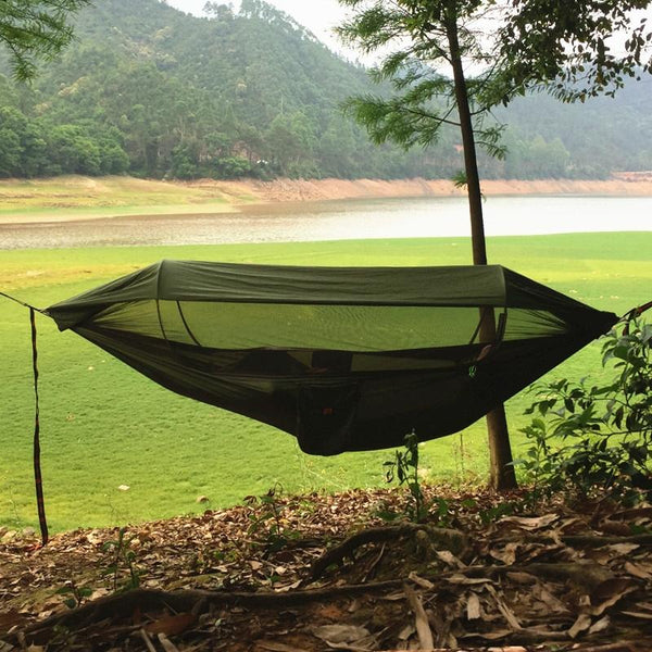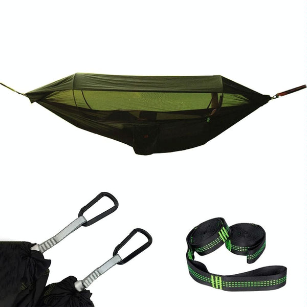 Parachute Cloth Anti-Mosquito Sunshade With Mosquito Net Hammock Outdoor Single Double Swing Off The Ground Aerial Tent 270x140cm (Army Green)