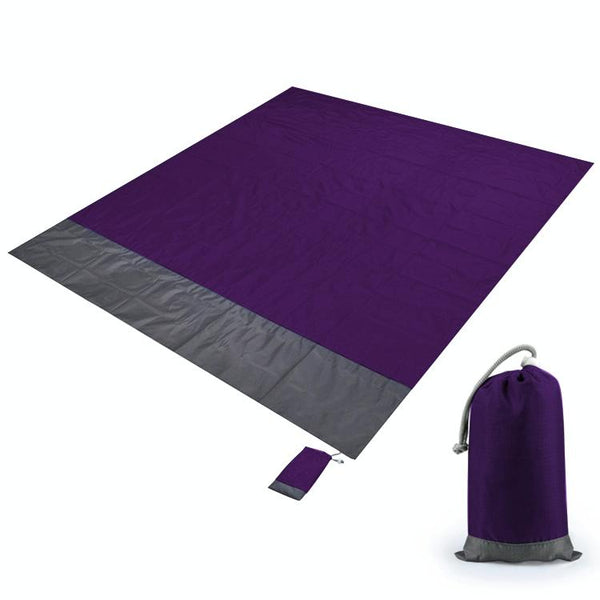 Polyester Waterproof Plaid Cloth Pocket Picnic Mat Outdoor Camping Beach Mat, Size: 2.1 x 2m(Purple + Dark Gray)