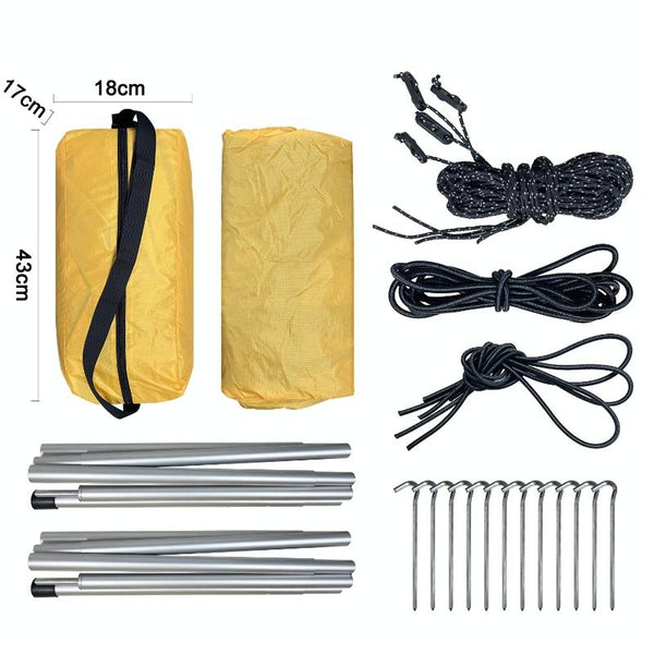 9. According to the actual model, the tent can be built on the side door of the car by using the weaving loops and binding ropes on the tent.