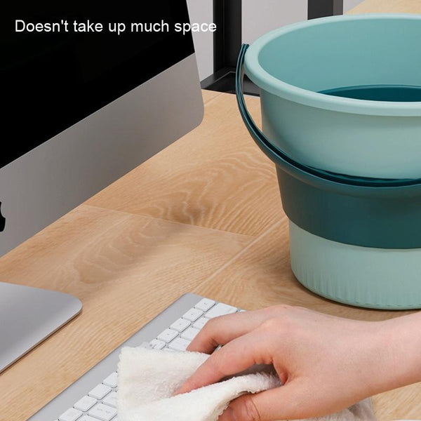 Small 5L Folding Thickened Portable Plastic Bucket Outdoor Fishing Barrel Car Travel Wash Barrel(Light Green)