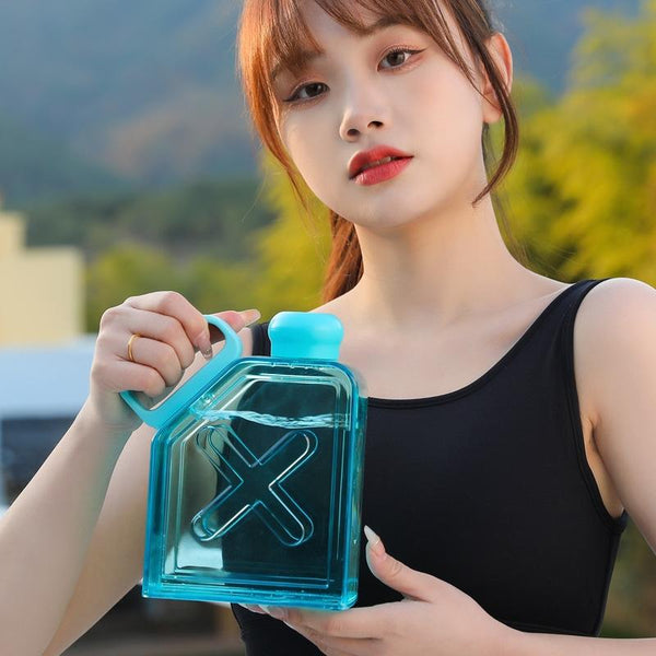 Square Fitness Sports Large Capacity Plastic Water Cup with Handle(Yellow)