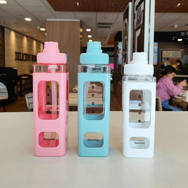 Square Plastic Water Cup with Straw Outdoor Sports Large-Capacity Portable Kettles, Colour: 900ml (Red)