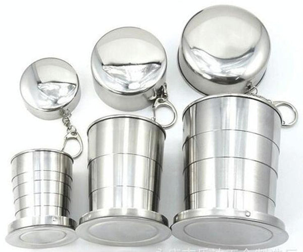 Stainless Steel Camping Folding Cup Traveling Outdoor Camping Hiking Mug Portable Collapsible Cup L 250ML