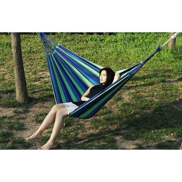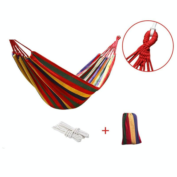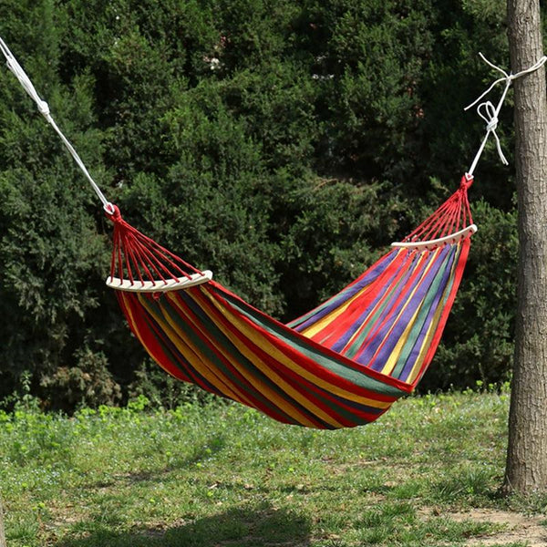 Thick Canvas Hammock Field Rollover Prevention OutdoorHammock Swing260x150 With Stick (Red Stripes)