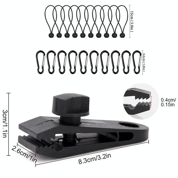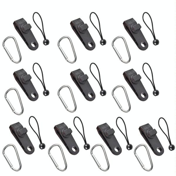 Windproof Canopy Fixed Tent Clip Rope Buckle Set 10 Clips+10 Black Ropes+10 Silver Fast Hangings