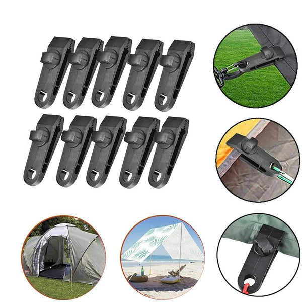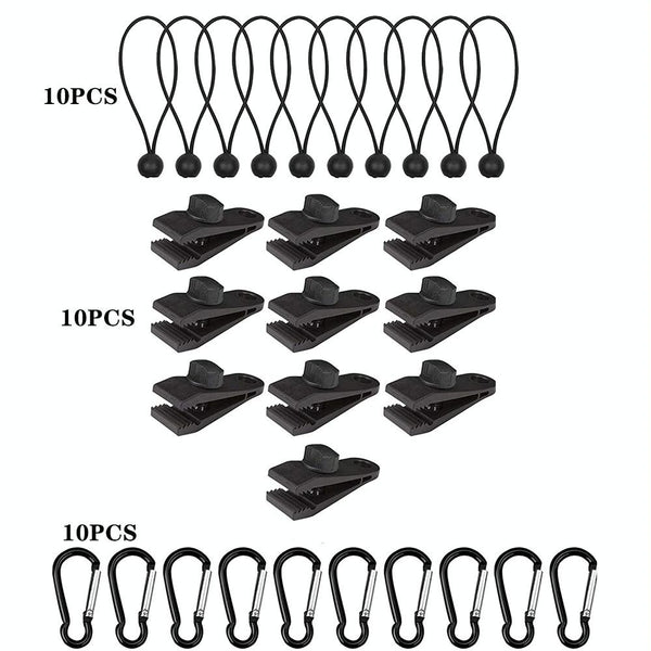 Windproof Canopy Fixed Tent Clip Rope Buckle Set 10 Clips+10 Elastic Ropes+10 Black Buckles